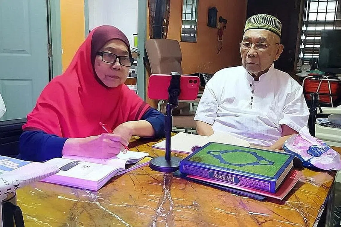 Meskipun tidak mampu berjalan, Cik Aisah masih terus menabur khidmat mengajar Al-Quran.