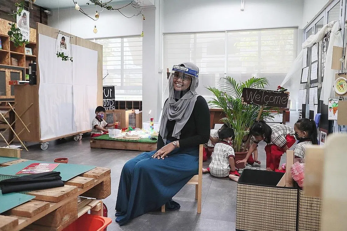 Itulah prinsip Cik Nur Aisyah Jumadi, 36 tahun, yang sudah mempunyai 18 tahun pengalaman dalam sektor pendidikan awal kanak-kanak dan kini memegang jawatan sebagai naib pengetua di Pusat Pembangunan Kanak-Kanak PPIS Jurong 2.