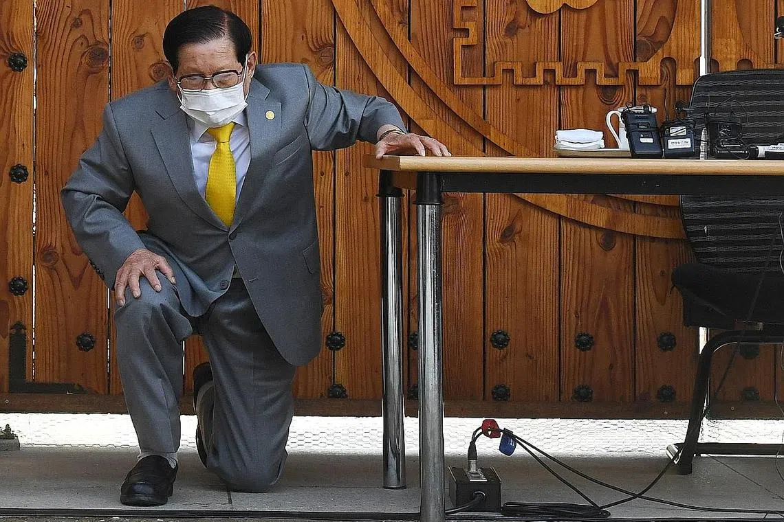 KETUA Gereja Shincheonji di Korea Selatan, Lee Man-hee, melutut sambil memohon maaf dalam siaran langsung televisyen setelah gereja yang diketuainya itu menjadi pusat penularan koronavirus di Korea Selatan.