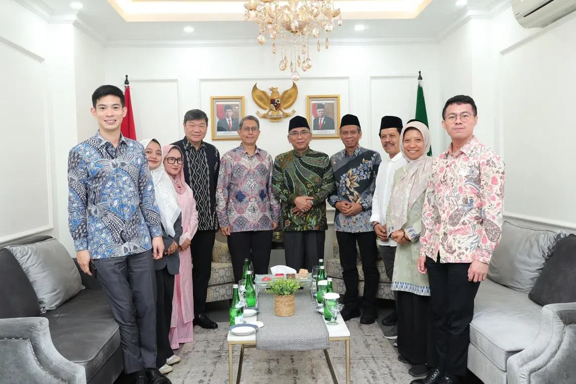 Profesor Madya Dr Muhammad Faishal Ibrahim (lima dari kiri) bertemu dengan pengerusi Majlis Eksekutif Nahdlatul Ulama (NU) Encik Yahya Cholil Staquf (lima dari kanan) serta wakil NU lain dalam lawatan ke Jakarta. - Foto MHA