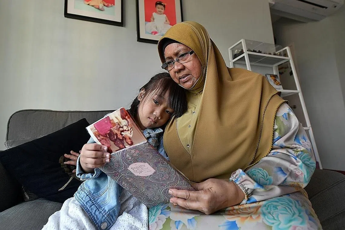 LEBIH SELESA: Cik Jamnah kini mampu melihat sekelilingnya termasuk melihat album bersama cucunya, Adriana Hafiya Mohammad Aidil Adzahar, dengan lebih selesa selepas mendapatkan rawatan suntikan yang diperlukan di SNEC. - Foto BH oleh NG SOR LUAN -