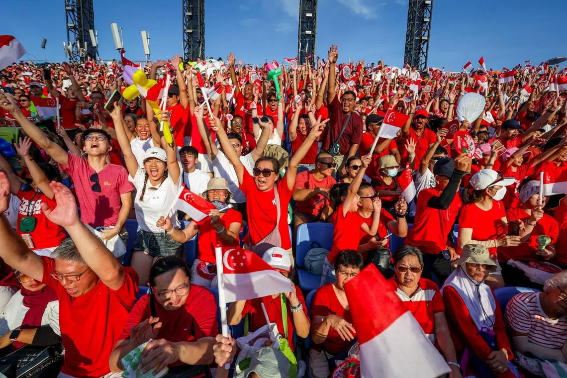 MENGEJAR KEJAYAAN BERSAMA: Warga Singapura bersama-sama meraikan Hari Kebangsaan. Semangat bersatu padu ini wajar diluaskan demi memastikan negara ini dapat terus berjaya dan mewujudkan masyarakat yang lebih inklusif. - Foto fail