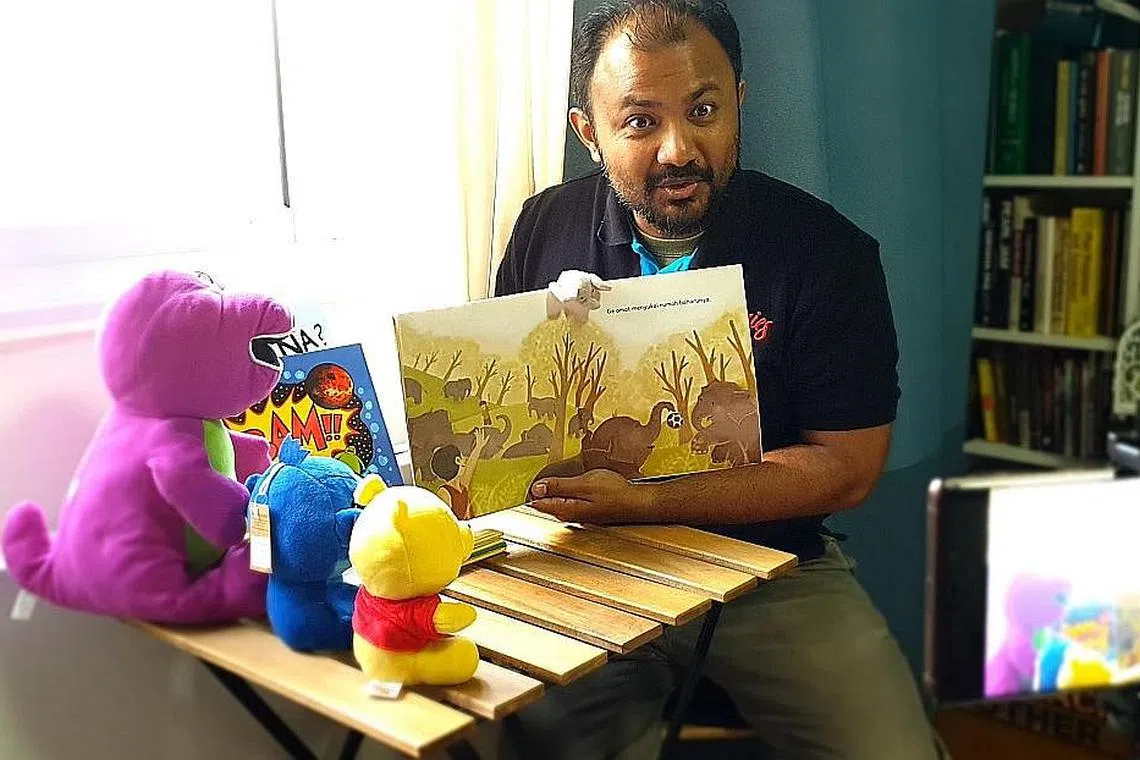Menurut Encik Shahril, 42 tahun, meskipun beliau telah sedekad bekerja di perpustakaan dan bercerita kepada kanak-kanak, bercerita di dalam talian telah mendorongnya untuk menjadi lebih kreatif untuk menarik perhatian penonton.